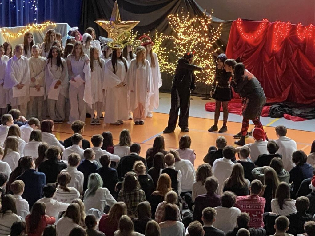Dzisiejszy dzień miał w sobie coś wyjątkowego.Od samego rana towarzyszyła nam świąteczna atmosfera – dużo ciepła, życzliwości i wspólnego bycia razem. Pięknym wstępem były jasełka