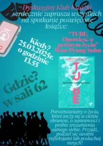 Tym razem dość krytycznie uczniowie ocenili powieść „Tube” współczesnej koreańskiej pisarki Won-Pyung Sohn. Nie zachwyciła ich dość banalna historia bohatera Kima, język tłumaczenia oraz płytkie refleksje na podjęty w utworze temat kryzysu egzystencjalnego, depresji. Sam problem eksponowany przez autorkę był nader poważny i bardzo aktualny.