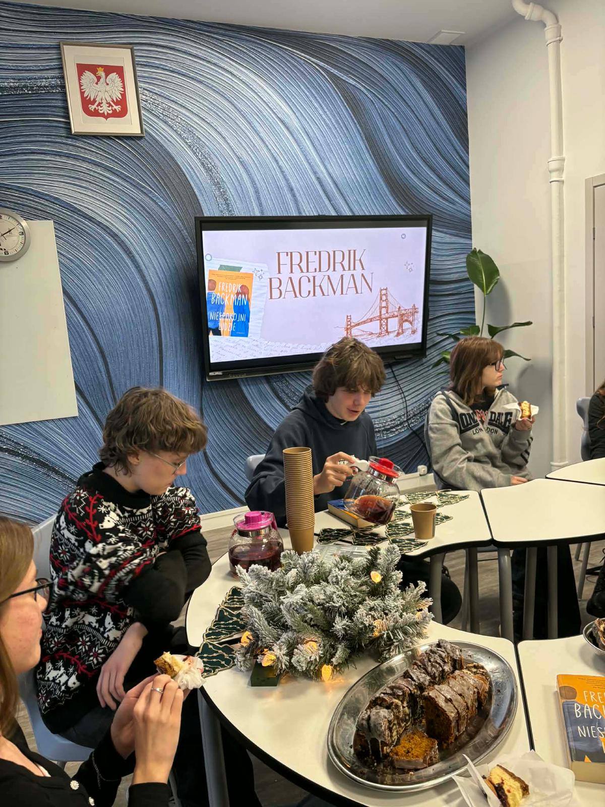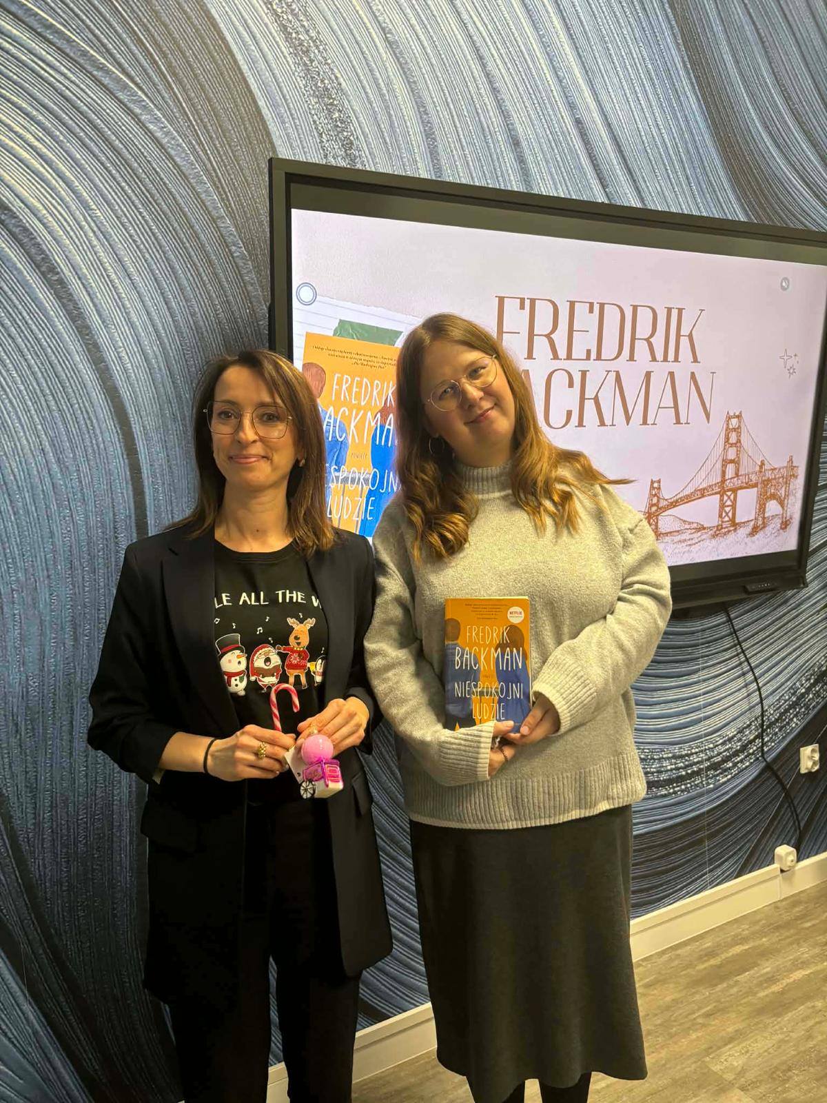Dziś odbyło się mikołajkowe spotkanie Dyskusyjnego Klubu Książki, poświęcone powieści Fredrika Backmana „Niespokojni ludzie”. W świątecznej atmosferze uczestnicy rozmawiali o bohaterach książki, ich emocjach oraz o przesłaniu, jakie niesie ta pełna humoru i wzruszeń historia. Spotkanie było okazją do wymiany refleksji, wspólnych interpretacji oraz spędzenia czasu w miłym, mikołajkowym nastroju.