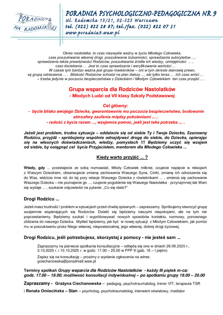 Grupy wsparcia dla Rodziców Nastolatków