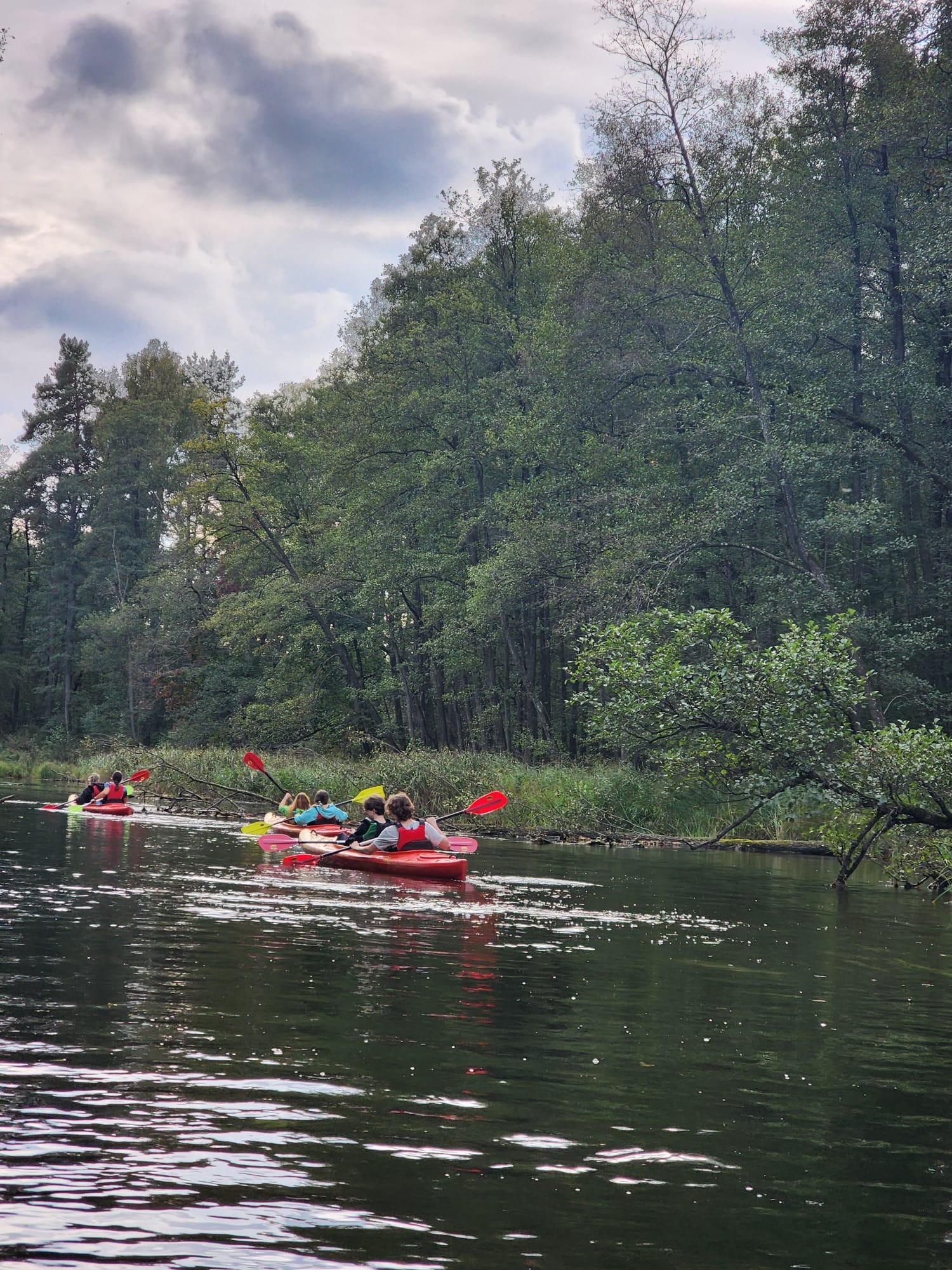 Uczniowie z klas rozszerzających biologię spędzili dziś wyjątkowy dzień w Rezerwacie Zakręt oraz nad Jeziorem Mokrym. Obserwowali przyrodę w naturalnym środowisku, poznawali lokalne ekosystemy i uczestniczyli w spływie kajakowym.