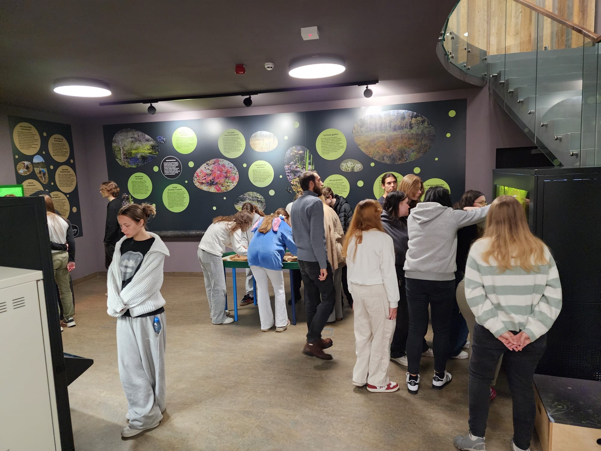Następnie zakwaterowaliśmy się w KUMAK – Mazurskim Centrum Bioróżnorodności i Edukacji Przyrodniczej Uniwersytetu Warszawskiego w Urwitałcie! To nowoczesne centrum dydaktyczne, gdzie czekają na nas laboratoria i interaktywne wystawy poświęcone ekosystemom wodnym i bagiennym Mazur.